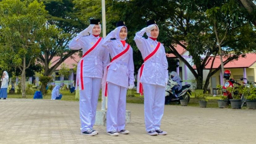 PESERTA KUR DALAM UPACARA HUT RI KE -77 OLEH SISWA KELAS XI IPS
